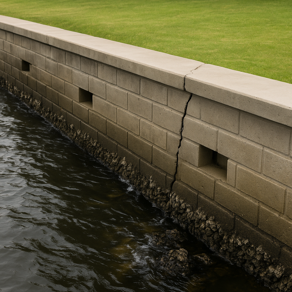 Common signs that your seawall may need repair include visible cracks, leaks, erosion behind the seawall, and leaning or settling of the structure. If you notice any of these signs, it’s important to schedule an inspection to prevent further damage.